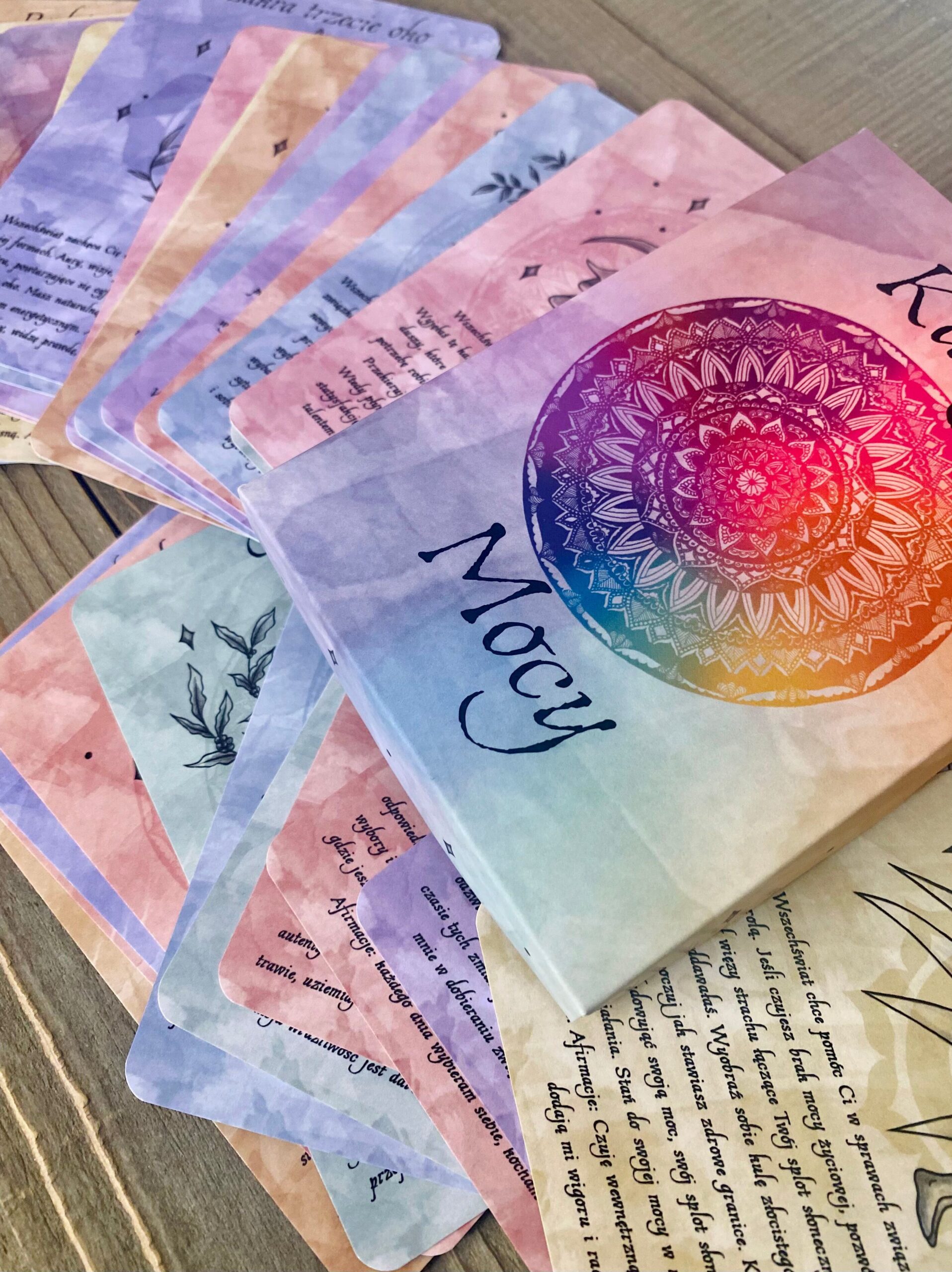 Karty mocy powstały z pasji do intuicyjnej pracy z nimi. To cudowne narzędzie przewodnictwa. Odkąd kilka lat temu zaczęłam nimi pracować, zapragnęłam stworzyć swoje autorskie karty, bliskie mojemu sercu.